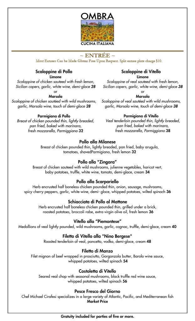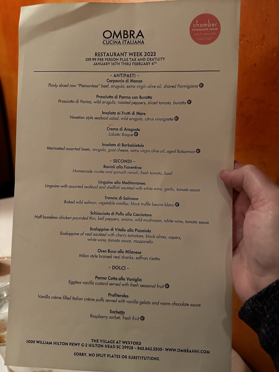 When you step into Ombra Cucina Italiana, you're not just getting a meal - you're getting a true taste of Italy right in the heart of Hilton Head Island. Located at 1000 William Hilton Parkway, this cozy spot offers an exceptional selection that brings the essence of Italian cooking straight to your table. From rich pastas to perfectly grilled meats, Ombra Cucina Italiana Menu has something for every palate. The flavors are authentic, with each dish crafted using the freshest ingredients, making every bite feel like a delicious experience you want to savor. Whether you're in the mood for a classic Margherita pizza or something more indulgent like a creamy risotto, there’s no shortage of mouthwatering options to choose from. Don’t forget to try their hand-crafted desserts and robust wines, which pair perfectly with any meal. It's the kind of place that makes you feel at home while enjoying the best of Italian cuisine.